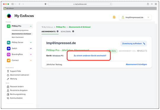 Subskriptions-Lizenz an einen anderen Computer weitergeben. Stichwort Computer defekt, oder Computer wurde ausgetauscht, ersetzt